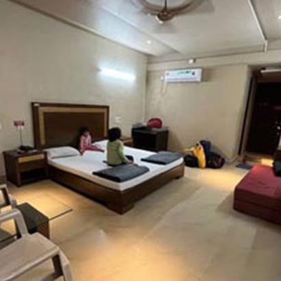 Our well-maintained rooms provide a peaceful retreat after a day of spiritual activities. Equipped with all essential amenities such as clean linens, 24/7 hot water, and comfortable beds, we ensure you have a restful night. With spacious interiors and a tranquil ambiance, our rooms are the perfect setting for relaxation and reflection. We understand that after a day of exploration, comfort is essential to rejuvenate the body and mind. Our rooms are designed to offer a homely environment where you can feel completely relaxed. Whether you need extra bedding or specific room preferences, we are here to cater to your needs.